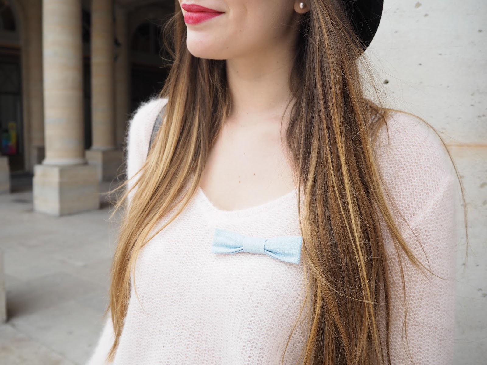 Bonjour les filles ! Dans ce look, je vous présente de nouvelles pièces que j'adore, dont bien sûr du mohair et du rose poudré, on ne change pas une équipe qui gagne ! J'ai également craqué pour cette jupe à empiècements qui change des petites jupes noires classiques et dont j'aime beaucoup la coupe. Je vous rassure, mon pull est en mohair mais il reste fin alors ça reste un pull de printemps sans aucun souci.